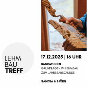 Beim LehmBauTreff im Dezember widmen wir uns wieder den Grundlagen des Bauens mit Lehm.